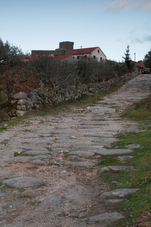 Na encosta, sobranceira à várzea de Linhares e cruzada por antiga via romana, estendeu-se a povoação: o sistema fortificado, entregue a um